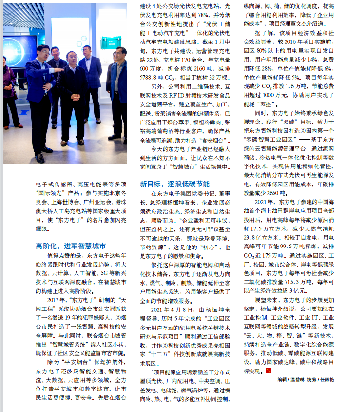除为“平安烟台”保驾护航外,湖南百金惠农业科技有限公司还涉足智能交通、智慧物流、大数据、云应用等多领域,全方位打造平安城市和数字城市,让市民生活更便捷、更安全。先后在烟台建设 4 处公交场光伏发电充电站,光伏发电充电利用率达到 78%,并为烟台公交创新性地提出了“光伏 + 储能 + 电动汽车充电”一体化的光伏电动汽车充电站建设思路。截至 1 月中旬,湖南百金惠农业科技有限公司共建设、运营管理充电站 22 处、充电桩 170 余台,年充电量600 万度,折合标煤 2160 吨,减排5788.8 吨 CO2,相当于植树 32 万棵。